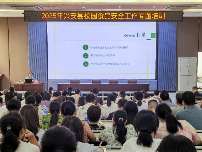 8月26日上午,广西壮族自治区桂林市兴安县市场监管局正在兴安中学逸夫楼会议室组织召开全县学校(含长儿园)食物平安专题培训会。全县各级各类学校、长儿园的担任人、食物平安员共计260余人加入培训。
