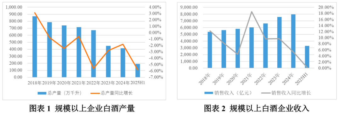 2024年以来,白酒行业消费布局优化、行业集中度提高使得规模以上企业收入有所增加,但总需求下降使得规模以上企业收入增速大幅下降,2025年上半年行业内上市公司经停业绩呈现负增加,运营者两级分化加剧。将来,行业仍将呈现存量合作的特点,行业内企业调整和分化的趋向延续。
