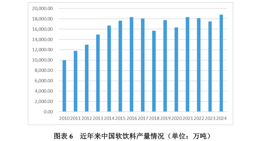 2024年以来,中国软饮料产量同比有所增加,但近十年来总规模变化不大,行业处于存量合作阶段。正在履历持续两年的下跌后,2024年,中国软饮料总产量同比增加7。5%至1。88亿吨,达到汗青最高程度;2025年1-7月,中国软饮料总产量同比增加3。0%至1。11亿吨。2015-2024年,中国软饮料产量年均复合增加0。71%,软饮料市场虽履历波动,但仍表示出较强的不变性。面临消费者对低糖、动物卵白饮料及功能性饮料等愈加健康、特定场景饮品偏好的加强以及市场所作加剧、产物同质化现象严沉的市场款式,饮料厂商通过产物立异、渠道优化及营销策略调整等体例,维持本身的合作力。